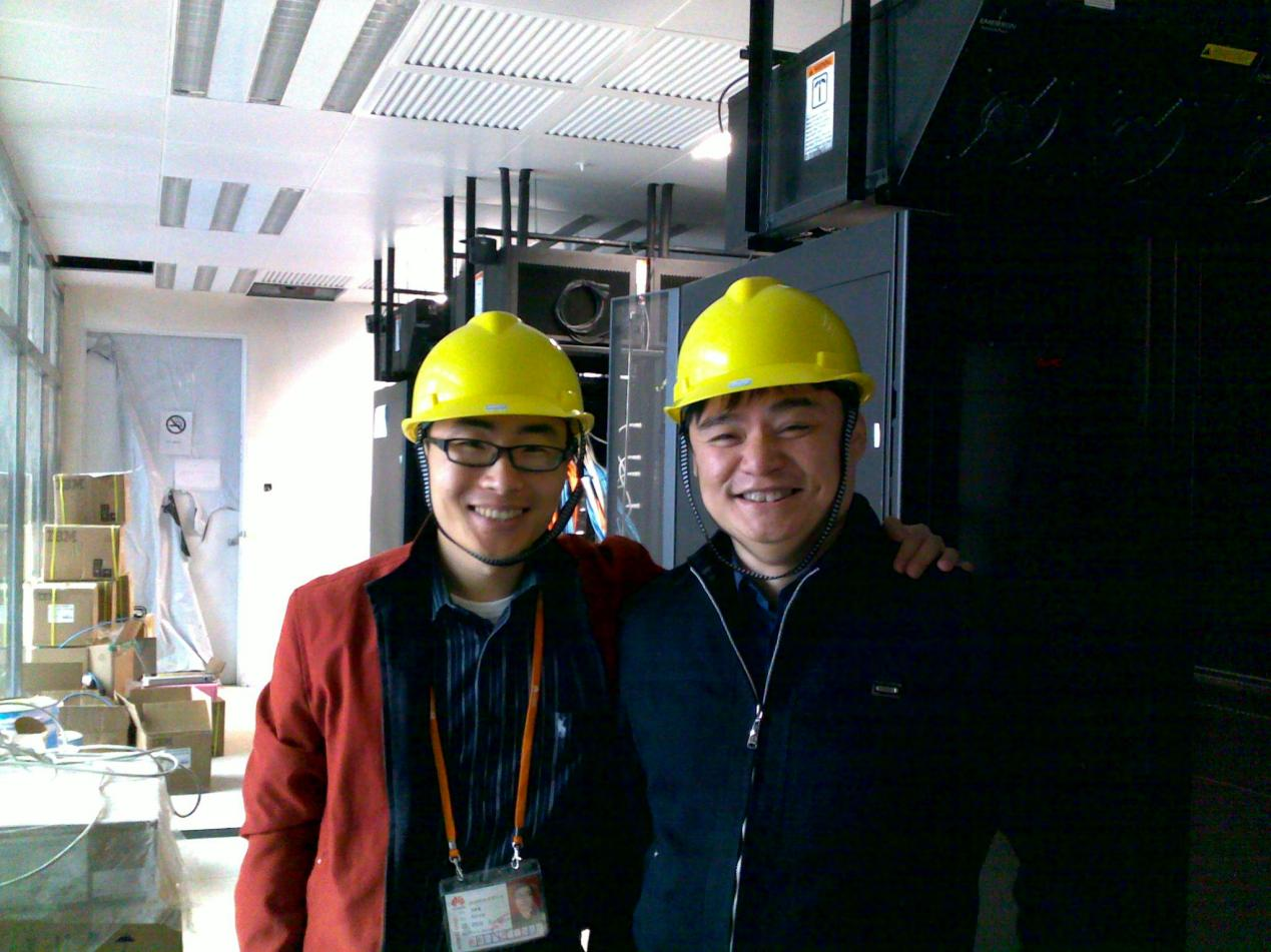 2010年,我(左)和我的老师Davy哥(右)在菊厂上研所,厕所都还没建好,VDI已Ready
